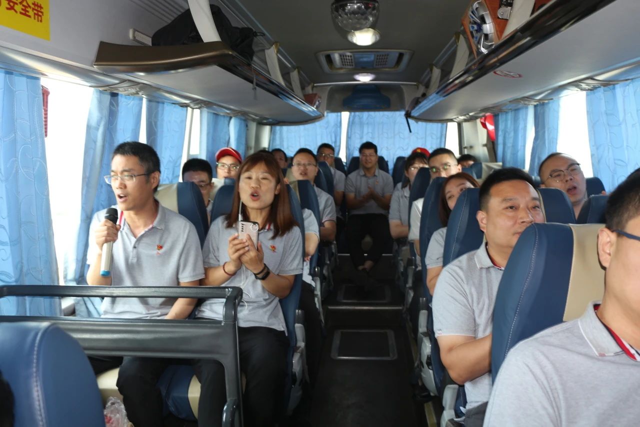 在行駛途中的紅歌賽環節,領導帶頭演唱,車廂內氣氛熱列,《把一切獻給黨》《太行頌》《沒有共產黨就沒有新中國》《一支鋼槍》《珊瑚頌》《強軍戰歌》等一首首紅色經典曲目讓人激情滿懷。