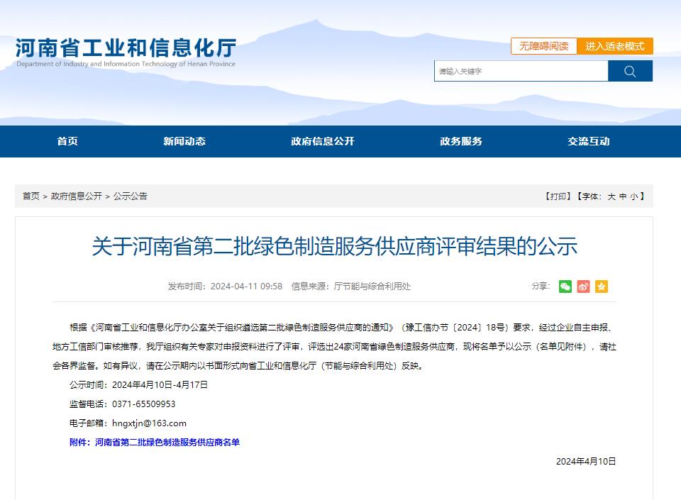 此次成功入選“河南省綠色制造服務供應商”,是對公司在綠色制造服務業績和能力上的支持與認可。下一步,公司將結合自身業務方向,積極服務行業綠色低碳循環發展,為全國工業企業節能降碳資源循環利用提供更多定制化解決方案,為做大做強河南省節能環保產業貢獻力量。