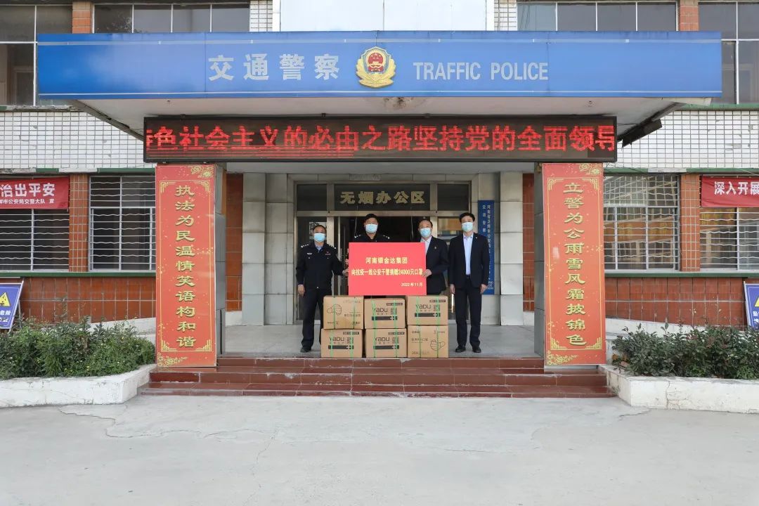 在當前疫情嚴峻復雜的形勢下,公安干警不懼風險英勇戰斗在疫防一線,為守護一方平安和抗擊疫情作出了重要貢獻。銀金達集團黨委書記、董事長閆銀鳳為助力公安干警抗擊疫情,委托集團黨委副書記、工會主席楊鳳瑞和彩印公司副總經理劉廣斌到衛輝市公安局、衛輝市交警大隊慰問,并捐獻防疫口罩2.4萬只,表達銀金達干部職工的熱誠問候。