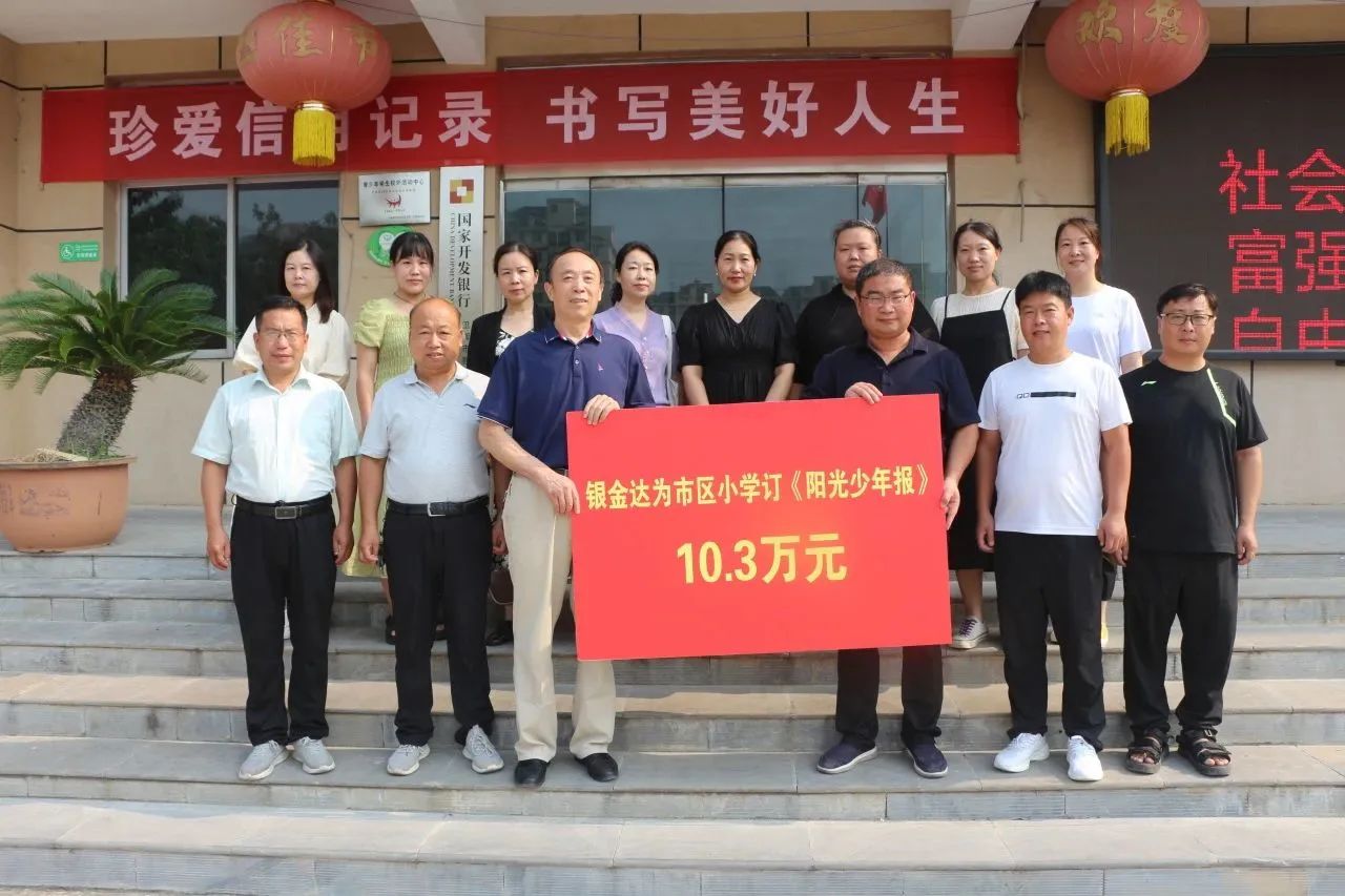 《陽光少年報》是河南廣播電視臺主管、大象新聞客戶端主辦面向小學(xué)生的報紙。此次銀金達捐贈訂閱的《陽光少年報》達800份,衛(wèi)輝市教體局教育股分配給市區(qū)11所小學(xué),價值10.32萬元。