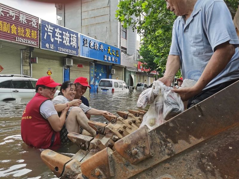 創新中心(新鄉市高新區)黃曉謹(創新中心黨支部書記、集團副總裁)領隊帶領創新中心19人自救搶險;